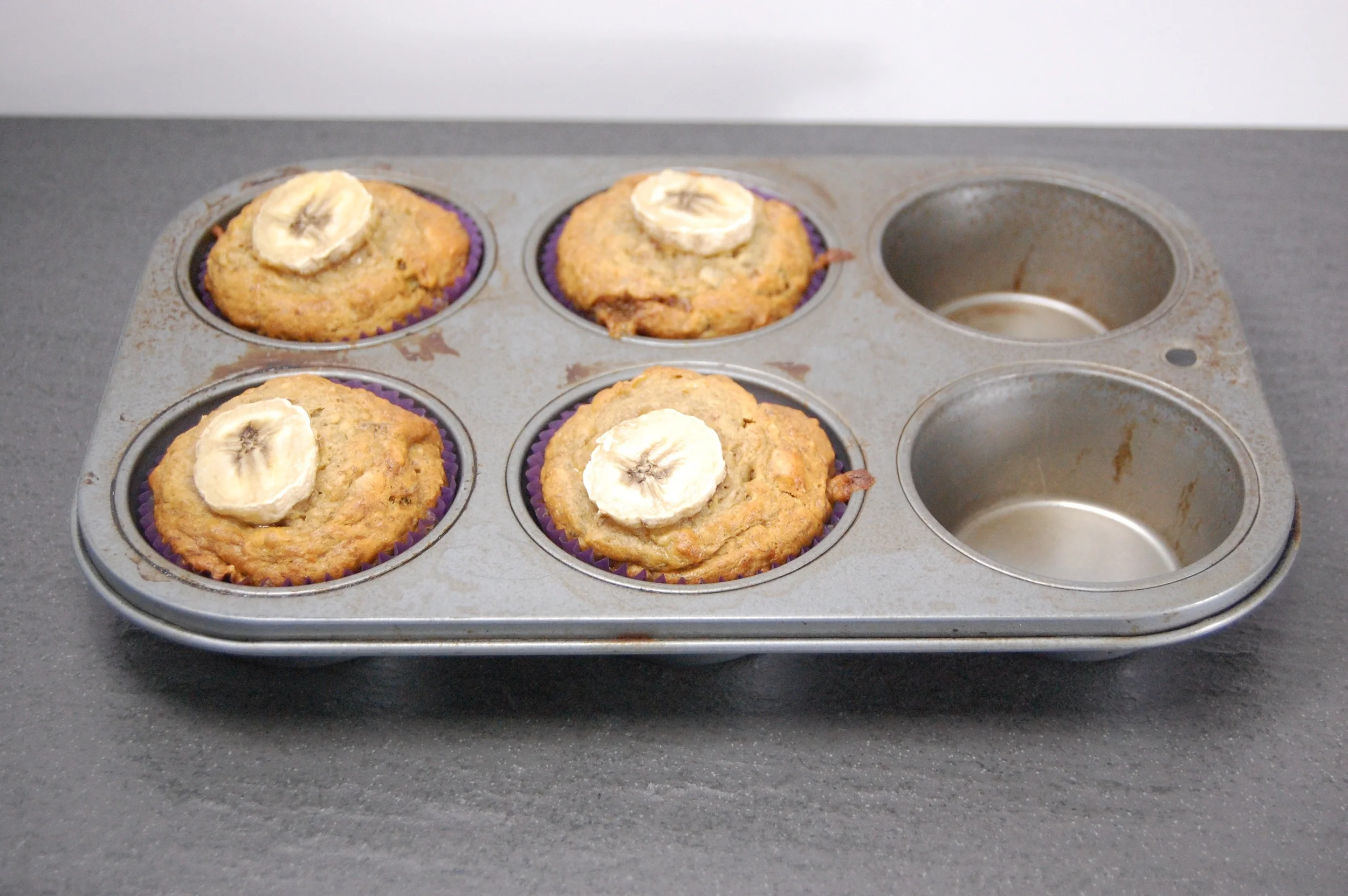 Set aside some batter to make banana bread muffins for your toddler! Use cupcake liners with their favorite characters on them making an equally as fun, but healthier alternative, to a cupcake for a special treat!